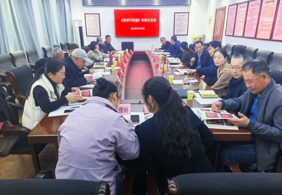 2026年3月20日上午,《菏泽芍药谱》专家论证会在牡丹区政协七楼会议室举行。出席论证会的领导有牡丹区政协主席葛广亮、牡丹区副区长牛广凯、牡丹区政协副主席李莹。会议特别邀请中国牡丹芍药协会会长王雁以视频方式参会,中国牡丹芍药协会副会长何丽霞,北京林业大学教授于晓南,牡丹芍药资深专家赵孝庆、孙文海、赵信勇、孙桂芬等亲临现场。我中心副主任曹瑞臣教授受邀参加了书稿论证会,此外,牡丹省级农高区、牡丹区牡丹花卉产业发展中心、牡丹研究院等相关单位负责同志及编纂委员会全体成员参会。