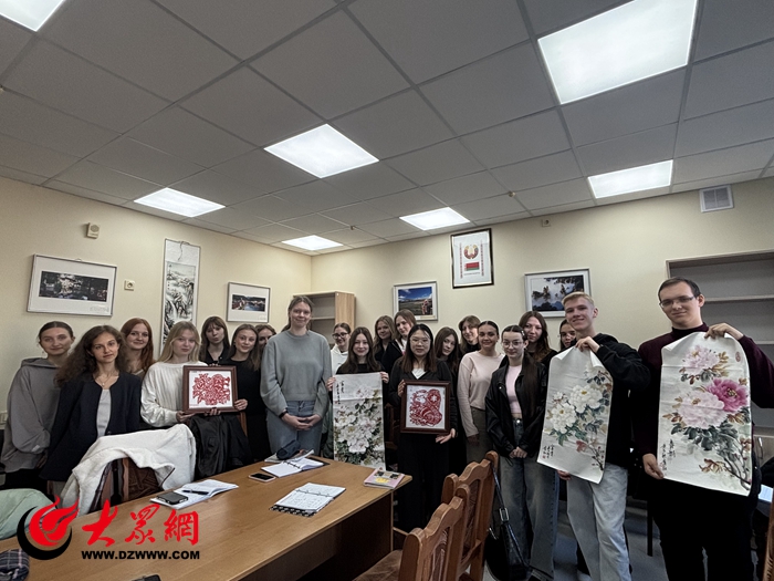 线上活动结束后,来自菏泽市牡丹区高庄镇的留学生带领国外留学生们开展了丰富的线下活动,通过展示牡丹剪纸、牡丹工笔画、牡丹水墨画等方式,让国外友人近距离感受到了中国传统文化的博大精深,进一步激发了大家对中国传统文化的浓厚兴趣。牡丹是菏泽的城市名片,也是中华优秀传统文化的重要载体。此次与白俄罗斯国立经济大学开展线上文化交流活动,是牡丹区推动牡丹文化走向世界的一次有益尝试。本中心将一如既往致力于搭建文明对话桥梁,助推菏泽牡丹文化在国际舞台绽放光芒。
