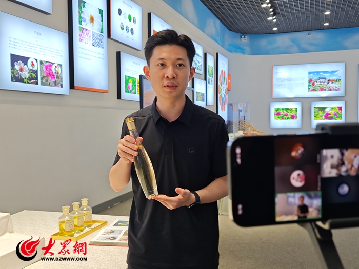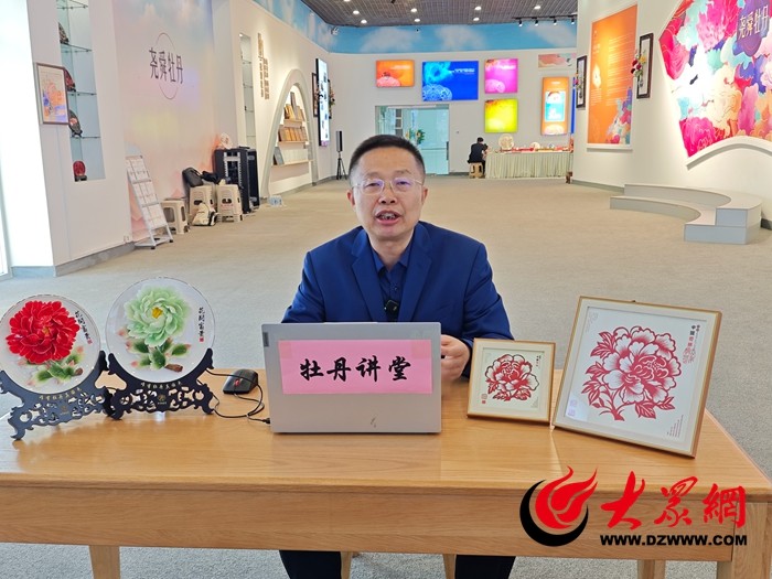 随后,尧舜牡丹盛世芳华馆馆长张孟威借助高清直播设备,带领白俄罗斯师生“沉浸式”参观了展厅内牡丹籽油、牡丹化妆品、牡丹文创等产品。一幅幅精美的牡丹画作、一件件巧夺天工的牡丹剪纸、一个个蕴含牡丹元素的文创产品,让屏幕另一端的师生们赞叹不已。